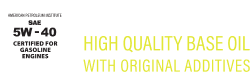 FEATURES: ILSAC GF-5 Fully Synthetic Excellent protection against deposits caused by high temperatures Optimal oil pressure under all operating conditions High thermal stability and oxidation resistance Reduces fuel consumption and overall costs Changes intervals and reduces pollutants Easy engine start performance in cold weather Excellent protection against corrosion, wear, and rust Enhances engine performance Provides long-term protection for engine components (oil pump, piston, and liner), extending engine life Meets the requirements of vehicle manufacturers Excellent thermal and oxidation stability